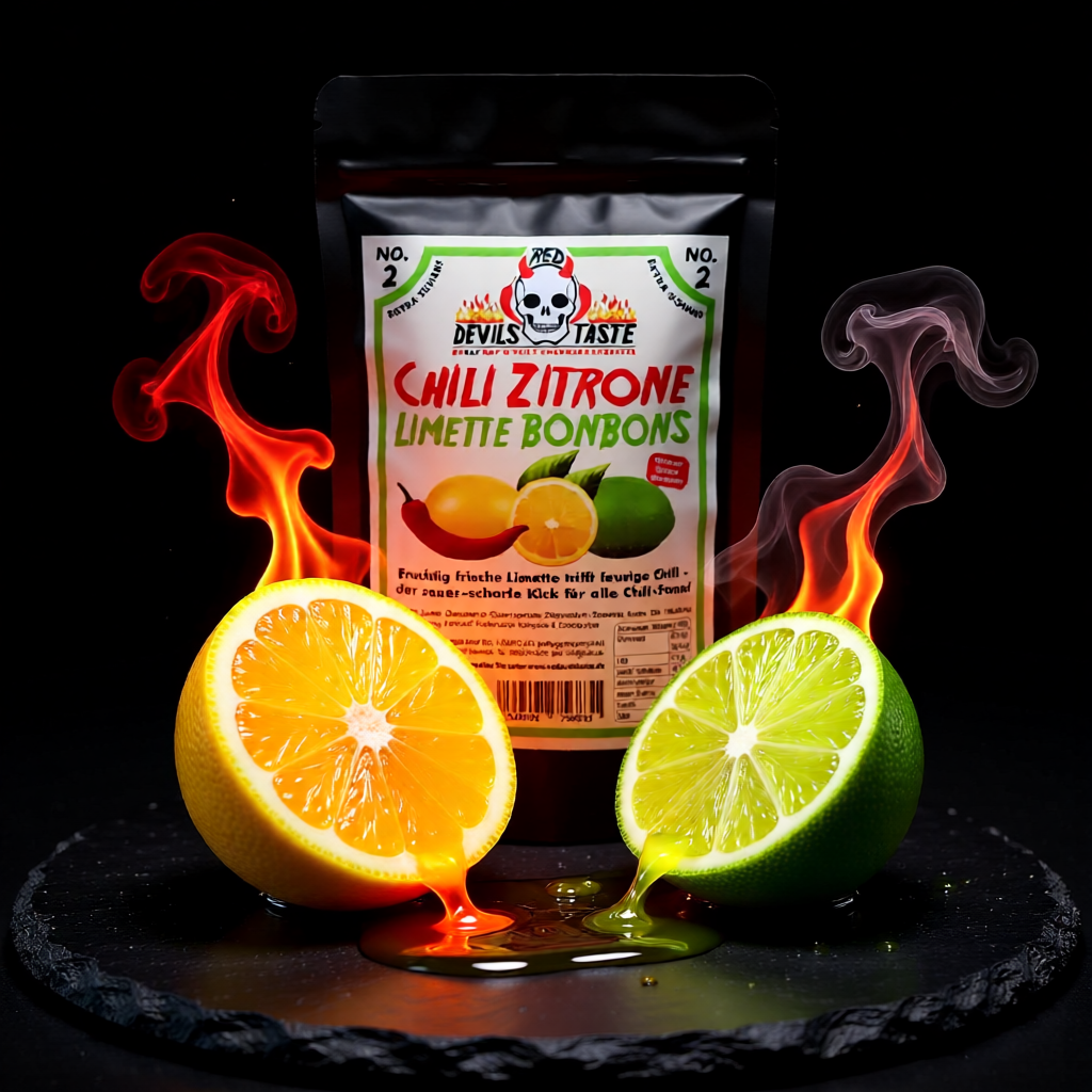 Bereit fürs fruchtig-scharfe Abenteuer? Die Chili Zitrone Limete Bonbons kombinieren Zitrus-Genuss mit feuriger Chili-Schärfe – erst fruchtig, dann richtig spicy. 200 g Qualitätsbonbons von Red Devils Taste (Deutschland)